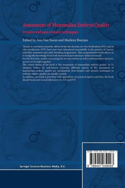 For the first time, studies concerning the human embryo as well as embryos from domestic species are brought together. The central theme of the book is "the assessment of mammalian embryo quality". In 15 chapters, written by well-known scientists, different aspects of the assessment of mammalian embryo quality are summarized. Non-invasive and invasive techniques to evaluate embryo quality are separated in two parts.