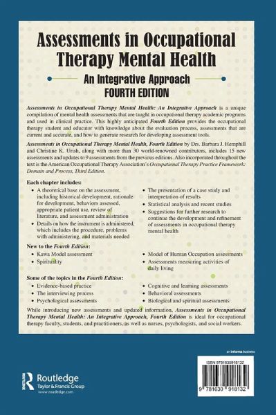 Assessments in Occupational Therapy Mental Health: An Integrative Approach, Fourth Edition is a unique compilation of mental health assessments that are taught in occupational therapy academic programs and used in clinical practice.