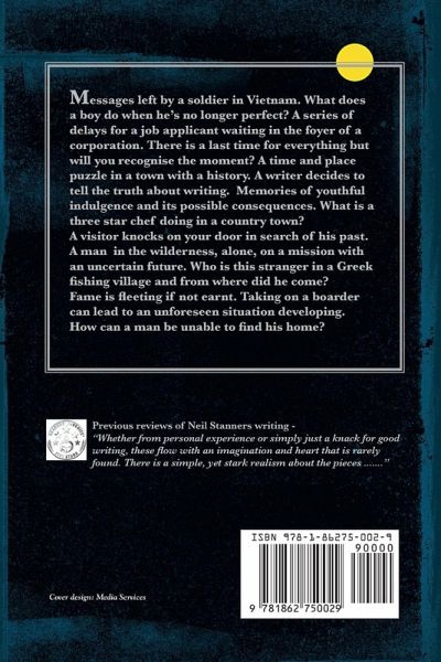 Stories of people, places and situations and the world. Messages left by a soldier in Vietnam. What does a boy do when he’s no longer perfect? A series of delays for a job applicant waiting in the foyer of a corporation. There is a last time for everything but will you recognise the moment? A time and place puzzle in a town with a history. A writer decides to tell the truth about writing. Memories of youthful indulgence and its possible consequences. What is a three-star chef doing in a country town? A visitor knocks on your door in search of his past. A man in the wilderness, alone, on a mission with an uncertain future. Who is this stranger in a Greek fishing village and from where did he come? Fame is fleeting if not earnt. Taking on a boarder can lead to an unforeseen situation developing. How can a man be unable to find his home?