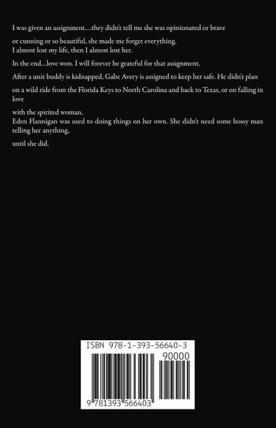 I was given an assignment.…they didn't tell me she was opinionated or brave or cunning or so beautiful, she made me forget everything. I almost lost my life, then I almost lost her. In the end…love won. I will forever be grateful for that assignment. After a unit buddy is kidnapped, Gabe Avery is assigned to keep her safe. He didn't plan on a wild ride from the Florida Keys to North Carolina and back to Texas, or on falling in love with the spirited woman. Eden Flannigan was used to doing things on her own. She didn't need some bossy man telling her anything, until she did.