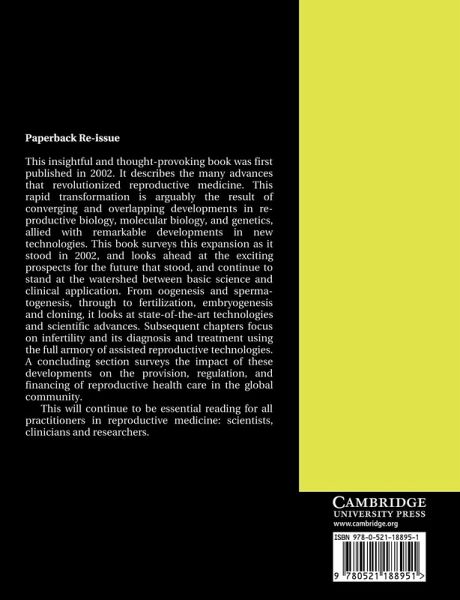 This insightful and thought-provoking 2002 collection of chapters describes the rapid advances that had revolutionised reproductive medicine in the years leading up to its publication. This transformation was the result of converging and overlapping developments in reproductive biology, molecular biology and genetics. These advances allied with remarkable technical developments pushed the boundaries of this discipline ever faster forward. This volume surveys this rapid expansion as it stood in 2002 and looks ahead at exciting prospects for the future that stand at the watershed between basic science and clinical application. From oogeneis and spermatogenesis, through to fertilisation, embryogenesis and cloning, this volume looks at scientific advances. Subsequent chapters focus on infertility and its diagnosis and treatment using the full armory of assisted reproductive technologies. A concluding section surveys the impact of these developments on the provision, regulation and financing of reproductive health care in the global community.