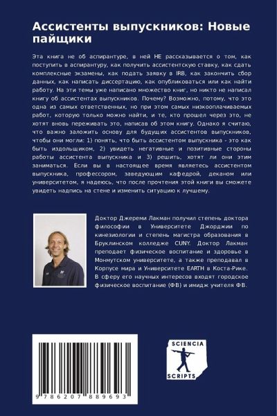 Jeta kniga ne ob aspiranture, w nej NE rasskazywaetsq o tom, kak postupit' w aspiranturu, kak poluchit' assistentskuü stawku, kak sdat' komplexnye äkzameny, kak podat' zaqwku w IRB, kak zakonchit' sbor dannyh, kak napisat' dissertaciü, kak opublikowat'sq ili kak najti rabotu. Na äti temy uzhe napisano mnozhestwo knig, no nikto ne napisal knigu ob assistentah wypusknikow. Pochemu? Vozmozhno, potomu, chto äto odna iz samyh otwetstwennyh, no pri ätom samyh nizkooplachiwaemyh rabot, kotoruü tol'ko mozhno najti, i te, kto proshel cherez äto, ne hotqt wnow' perezhiwat' äto, napisaw ob ätom knigu. Odnako q schitaü, chto wazhno zalozhit' osnowu dlq buduschih assistentow wypusknikow, chtoby oni mogli: 1) ponqt', chto byt' assistentom wypusknika - äto kak byt' izdol'schikom, 2) uwidet' negatiwnye i pozitiwnye storony raboty assistenta wypusknika i 3) reshit', hotqt li oni ätim zanimat'sq. Esli wy w nastoqschee wremq qwlqetes' assistentom wypusknika, professorom, zaweduüschim kafedroj, dekanom ili uniwersitetom, q nadeüs', chto posle prochteniq ätoj knigi wy smozhete uwidet' nadpis' na stene i izmenit' situaciü k luchshemu.