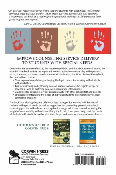 Foreword by Jay Trenhaile Preface Acknowledgments About the Authors 1. The Legal Context for Working With Students With Disabilities The Individuals with Disabilities Educational Improvement Act (IDEA) Section 504 The Americans with Disabilities Act (ADA) The No Child Left Behind (NCLB) Act Additional Laws Affecting Schools and School Counselors When Parents, Students, and School Personnel Disagree Concluding Comments 2. Specific Learning Disabilities and the School Counselor s Role Students With Specific Learning Disabilities: A Heterogeneous Group Learning Disabilities and Risk Factors Prereferral Activities Concluding Comments 3. Knowing the Whole Child Gathering Data About the Child Observation and Assessment Tools Reporting Findings Concluding Comments 4. Matching Data With Appropriate Interventions The TREAT Model Theories and Concepts Relationships Environment Adjunct Services and Supplemental Aids Treatable Goals Concluding Comments 5. Building a Structure for Success Identifying the Affected Skill or Curriculum Area Realistic and Measurable Goals Writing SMART Goals Career-Related Goals Life-Skills Goals Concluding Comments 6. Forming Partnerships With Families Parents and Families as Equal Partners Family Functioning Making Parents Feel Welcome Earning Parents Trust Adapting Your Style Reasons Parents React Differently Sexuality Working With the Siblings of Children With Disabilities Family Diversity Concluding Comments 7. Making a Difference in the Wider Circle of Caring Leadership Advocacy Collaboration and Teaming Systemic Change--Beginning With YOU Concluding Comments Resource A: Professional Organizations Resource B: ASCA Position Statement on the Professional School Counselor and Students With Special Needs Resource C: ASCA s Ethical Standards for School Counselors References Suggested Readings Index