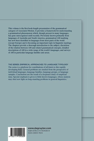 This volume is the first book-length presentation of the grammatical category of Associated Motion. It provides a framework for understanding a grammatical phenomenon which, though present in many languages, has gone unrecognized until recently. Previously known primarily from languages of Australia and South America, grammatical AM marking has now been identified in languages from most parts of the world (except Europe) and is becoming an important topic in linguistic typology. The chapters provide a thorough introduction to the subject, discussion of the relation between AM and related grammatical concepts, detailed descriptions of AM in a wide range of the world's languages, and surveys of AM in particular language families and areas.