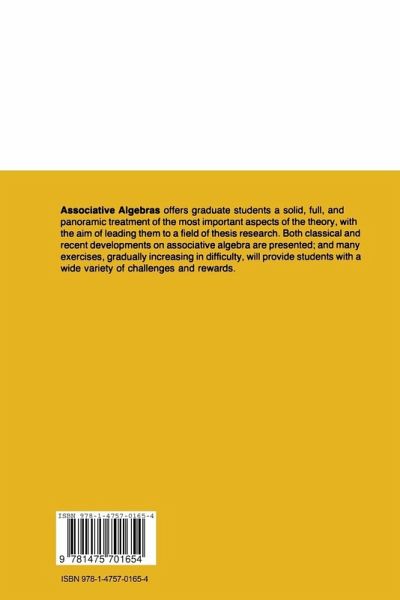 1 The Associative Algebra.- 1.1. Conventions.- 1.2. Group Algebras.- 1.3. Endomorphism Algebras.- 1.4. Matrix Algebras.- 1.5. Finite Dimensional Algebras over a Field.- 1.6. Quaternion Algebras.- 1.7. Isomorphism of Quaternion Algebras.- 2 Modules.- 2.1. Change of Scalars.- 2.2. The Lattice of Submodules.- 2.3. Simple Modules.- 2.4. Semisimple Modules.- 2.5. Structure of Semisimple Modules.- 2.6. Chain Conditions.- 2.7. The Radical.- 3 The Structure of Semisimple Algebras.- 3.1. Semisimple Algebras.- 3.2. Minimal Right Ideals.- 3.3. Simple Algebras.- 3.4. Matrices of Homomorphisms.- 3.5. Wedderbum's Structure Theorem.- 3.6. Maschke's Theorem.- 4 The Radical.- 4.1. The Radical of an Algebra.- 4.2. Nakayama's Lemma.- 4.3. The Jacobson Radical.- 4.4. The Radical of an Artinian Algebra.- 4.5. Artinian Algebras Are Noetherian.- 4.6. Nilpotent Algebras.- 4.7. The Radical of a Group Algebra.- 4.8. Ideals in Artinian Algebras.- 5 Indecomposable Modules.- 5.1. Direct Decompositions.- 5.2. Local Algebras.- 5.3. Fitting's Lemma.- 5.4. The Krull-Schmidt Theorem.- 5.5. Representations of Algebras.- 5.6. Indecomposable and Irreducible Representations.- 6 Projective Modules over Artinian Algebras.- 6.1. Projective Modules.- 6.2. Homomorphisms of Projective Modules.- 6.3. Structure of Projective Modules.- 6.4. Idempotents.- 6.5. Structure of Artinian Algebras.- 6.6. Basic Algebras.- 6.7. Representation Type.- 7 Finite Representation Type.- 7.1. The Brauer-Thrall Conjectures.- 7.2. Bounded Representation Type.- 7.3. Sequence Categories.- 7.4. Simple Sequences.- 7.5. Almost Split Sequences.- 7.6. Almost Split Extensions.- 7.7. Roiter's Theorem.- 8 Representation of Quivers.- 8.1. Constructing Modules.- 8.2. Representation of Quivers.- 8.3. Application to Algebras.- 8.4.Subquivers.- 8.5. Rigid Representations.- 8.6. Change of Orientation.- 8.7. Change of Representation.- 8.8. The Quadratic Space of a Quiver.- 8.9. Roots and Representations.- 9 Tensor Products.- 9.1. Tensor Products of R-modules.- 9.2. Tensor Products of Algebras.- 9.3. Tensor Products of Modules over Algebras.- 9.4. Scalar Extensions.- 9.5. Induced Modules.- 9.6. Morita Equivalence.- 10 Separable Algebras.- 10.1. Bimodules.- 10.2. Separability.- 10.3. Separable Algebras Are Finitely Generated.- 10.4. Categorical Properties.- 10.5. The Class of Separable Algebras.- 10.6. Extensions of Separable Algebras.- 10.7. Separable Algebras over Fields.- 10.8. Separable Extensions of Algebras.- 11 The Cohomology of Algebras.- 11.1. Hochschild Cohomology.- 11.2. Properties of Cohomology.- 11.3. The Snake Lemma.- 11.4. Dimension.- 11.5. Zero Dimensional Algebras.- 11.6. The Principal Theorem.- 11.7. Split Extensions of Algebras.- 11.8. Algebras with 2-nilpotent Radicals.- 12 Simple Algebras.- 12.1. Centers of Simple Algebras.- 12.2. The Density Theorem.- 12.3. The Jacobson-Bourbaki Theorem.- 12.4. Central Simple Algebras.- 12.5. The Brauer Group.- 12.6. The Noether-Skolem Theorem.- 12.7. The Double Centralizer Theorem.- 13 Subfields of Simple Algebras.- 13.1. Maximal Subfields.- 13.2. Splitting Fields.- 13.3. Algebraic Splitting Fields.- 13.4. The Schur Index.- 13.5. Separable Splitting Fields.- 13.6. The Cartan-Brauer-Hua Theorem.- 14 Galois Cohomology.- 14.1. Crossed Products.- 14.2. Cohomology and Brauer Groups.- 14.3. The Product Theorem.- 14.4. Exponents.- 14.5. Inflation.- 14.6. Direct Limits.- 14.7. Restriction.- 15 Cyclic Division Algebras.- 15.1. Cyclic Algebras.- 15.2. Constructing Cyclic Algebras by Inflation.- 15.3. The Primary Decomposition of Cyclic Algebras.- 15.4. Characterizing Cyclic Division Algebras.- 15.5. Division Algebras of Prime Degree.- 15.6. Division Algebras of Degree Three.- 15.7. A Non-cyclic Division Algebra.- 16 Norms.- 16.1. The Characteristic Polynomial.- 16.2. Computations.- 16.3. The Reduced Norm.- 16.4. Transvections and Dilatations.- 16.5. Non-commutative Determinants.- 16.6. The Reduced Whitehead Group.- 17 Division Algebras over Local Fields.- 17.1. Valuations of Division Algebras.- 17.2. Non-archimedean Valuations.- 17.3. Valuation Rings.- 17.4. The Topology of a Valuation.- 17.5. Local Fields.- 17.6. Extension of Valuations.- 17.7. Ramification.- 17.8. Unramified Extensions.- 17.9. Norm Factor Groups.- 17.10. Brauer Groups of Local Fields.- 18 Division Algebras over Number Fields.- 18.1. Field Composita.- 18.2. More Extensions of Valuations.- 18.3. Valuations of Algebraic Number Fields.- 18.4. The Albert-Hasse-Brauer-Noether Theorem.- 18.5. The Brauer Groups of Algebraic Number Fields.- 18.6. Cyclic Algebras over Number Fields.- 18.7. The Image of INV.- 19 Division Algebras over Transcendental Fields.- 19.1. The Norm Form.- 19.2. Quasi-algebraically Closed Fields.- 19.3. Krull's Theorem.- 19.4. Tsen's Theorem.- 19.5. The Structure of B(K(x)/F(x)).- 19.6. Exponents of Division Algebras.- 19.7. Twisted Laurent Series.- 19.8. Laurent Series Fields.- 19.9. Amitsur's Example.- 20 Varieties of Algebras.- 20.1. Polynomial Identities and Varieties.- 20.2. Special Identities.- 20.3. Identities for Central Simple Algebras.- 20.4. Standard Identities.- 20.5. Generic Matrix Algebras.- 20.6. Central Polynomials.- 20.7. Structure Theorems.- 20.8. Universal Division Algebras.- References.- Index of Symbols.- Index of Terms.