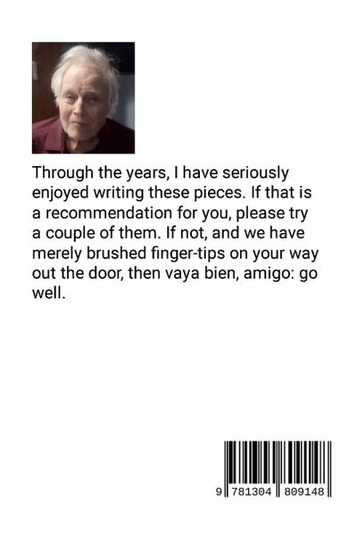 Through the years, I have seriously enjoyed writing these pieces. If that is a recommendation for you, please try a couple of them. If not, and we have merely brushed finger-tips on your way out the door, then vaya bien, amigo: go well.