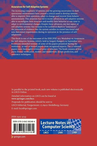The increasing complexity of systems and the growing uncertainty in their operational environments have created a critical need to develop systems able to improve their operation, adapt to change, and recover from failures autonomously. This situation has led to recent advances in self-adaptive systems able to reconfigure their structure and modify their behavior at run-time to adapt to environmental changes. Despite these advances, one key aspect of self-adaptive systems that remains to be tackled in depth is "assurances": the provision of evidence that the system satisfies its stated functional and non-functional requirements during its operation in the presence of self-adaptation. This book is one of the outcomes of the ESEC/FSE 2011 Workshop on Assurances for Self-Adaptive Systems (ASAS), held in Szeged, Hungary, in September 2011. It contains extended versions of some of the papers presented during the workshop, as well as invited papers from recognized experts. The 12 refereed papers were thoroughly reviewed and selected. The book consists of four parts: formal verification, models and middleware, failure prediction, and assurance techniques.