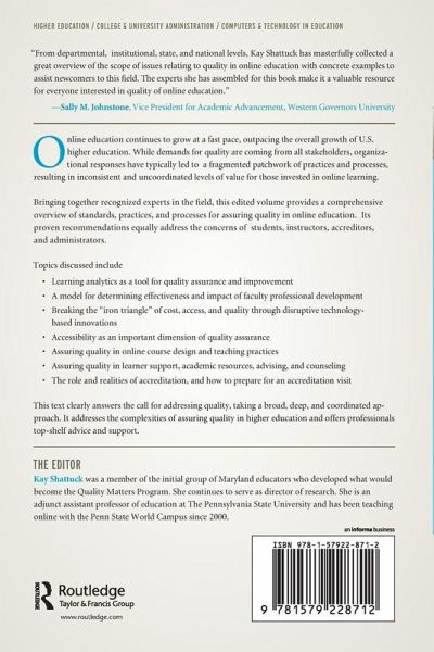 This text clearly answers the call for addressing quality from a broad, deep and coordinated understanding. It addresses the complexities of quality assurance in higher education and offers professionals top-shelf advice and support.