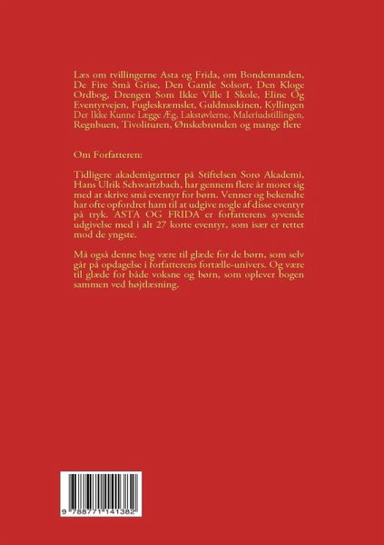 ASTA og FRIDA er en eventyrbog for de yngste og derfor velegnet som højtlæsning.Ældre børn kan dog også selv med fordel gøre sig bekendt med forfatterens eventyrverden. Bogen rummer i alt 27 korte eventyr med stor temamæssig bredde.