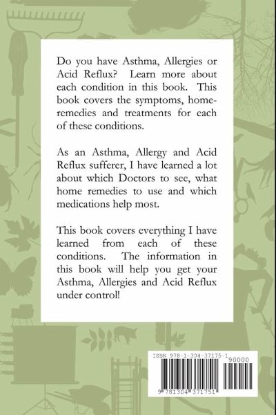 Do you have Asthma, Allergies or Acid Reflux? Learn more about each condition in this book. This book covers the symptoms, home-remedies and treatments for each of these conditions. As an Asthma, Allergy and Acid Reflux sufferer, I have learned a lot about which Doctors to see, what home remedies to use and which medications help most. This book covers everything I have learned from each of these conditions. The information in this book will help you get your Asthma, Allergies and Acid Reflux under control!