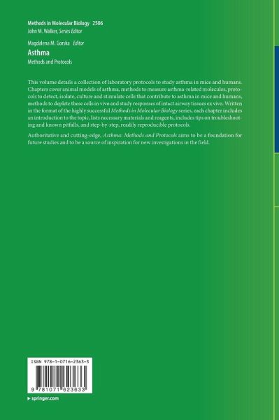 Authoritative and cutting-edge, Asthma: Methods and Protocols aims to be a foundation for future studies and to be a source of inspiration for new investigations in the field.