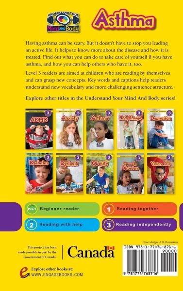 Having asthma can be scary. But it doesn't have to stop you from leading an active life. It helps to know more about the disease and how it is treated. Find out what you can do to take care of yourself if you have asthma, and how you can help others who have it, too. Level 3 readers are aimed at children who are reading by themselves and can grasp new concepts. Key words and captions help readers understand new vocabulary and more challenging sentence structure. ¿This project has been made possible in part by the Government of Canada.