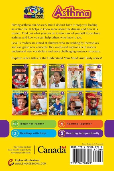 Having asthma can be scary. But it doesn't have to stop you from leading an active life. It helps to know more about the disease and how it is treated. Find out what you can do to take care of yourself if you have asthma, and how you can help others who have it, too. Level 3 readers are aimed at children who are reading by themselves and can grasp new concepts. Key words and captions help readers understand new vocabulary and more challenging sentence structure. ¿This project has been made possible in part by the Government of Canada.