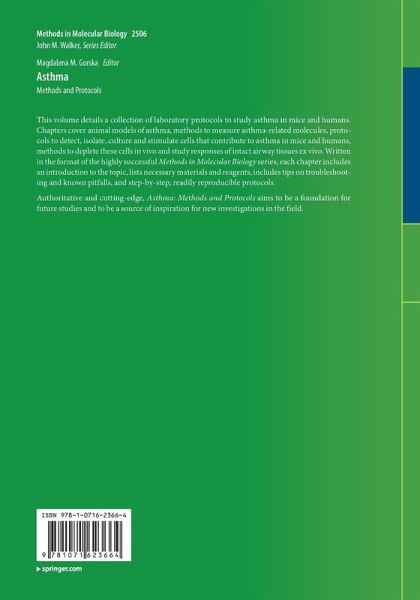 Authoritative and cutting-edge, Asthma: Methods and Protocols aims to be a foundation for future studies and to be a source of inspiration for new investigations in the field.