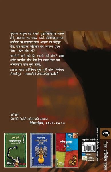 MUKESH WAS LEADING A NORMAL LIFE, HAPPY, CONTENTED. SUDDENLY, THERE APPEARED A STORM IN HIS LIFE. THE STORM WAS LIKE A HURRICANE. IT SHATTERED EVERYTHING, IT CHANGED EVERYTHING RELATED TO HIS LIFE. IT ACTUALLY CHANGED HIS LIFE. TILL THEN HE WAS STRONGLY AND FIRMLY TIED UP TO HIS FAMILY. BUT THE STORM BROKE THE VERY CORD THAT HAD TIED HIM TO HIS FAMILY. WHO WAS HE? WHICH RELATIONS WERE REAL? THE BLOOD RELATIONS OR THE RELATIONS WHICH WERE BUILT UP? HE SET FOR A JOURNEY IN SEARCH OF ANSWERS TO THESE QUESTIONS, IN A WAY, HE WAS TRYING TO FIND OUT ANSWER TO HIS BEING ITSELF. A VERY LONGING, EXCITING NOVEL BY SUDHA MURTI, THE FAMOUS KANNADA AUTHOR, IN HER ELUCIDATING STYLE. ¿¿¿¿¿¿¿ ¿¿¿¿¿¿ ¿¿¿ ¿¿¿¿ ¿¿¿¿¿¿¿¿¿¿¿¿ ¿¿¿¿¿ ¿¿¿¿, ¿¿¿¿¿ ¿¿ ¿¿¿¿ ¿¿¿¿. ¿¿¿¿¿¿¿¿¿¿¿¿¿¿¿ ¿¿¿¿¿¿¿ ¿¿ ¿¿¿¿¿¿¿ ¿¿¿¿¿¿ ¿¿¿¿¿¿ ¿¿¿ ¿¿¿¿¿ ¿¿¿¿. ¿¿ ¿¿¿¿ ¿¿¿¿¿¿¿¿ ¿¿¿ ¿¿¿¿¿ ¿¿¿¿¿ ¿¿¿¿... ¿¿¿ ¿¿¿¿ ¿¿? ¿¿¿¿¿¿¿ ¿¿¿¿ ¿¿¿ ¿¿, ¿¿¿¿¿¿¿ ¿¿¿¿ ¿¿¿¿¿¿¿? ¿¿¿ ¿¿¿¿ ¿¿¿¿¿¿¿¿¿¿ ¿¿¿ ¿¿¿¿ ¿¿¿¿ ¿¿¿¿¿¿ ¿¿¿¿:¿¿¿¿ ¿¿¿¿¿¿¿¿¿¿¿ ¿¿¿ ¿¿¿¿ ¿¿¿¿. ¿¿¿¿¿¿¿¿ ¿¿¿¿¿ ¿¿¿¿¿¿¿¿¿ ¿¿¿¿ ¿¿¿¿¿¿ ¿¿¿¿¿¿¿ ¿¿¿¿¿¿ ¿¿¿¿¿¿¿¿ ¿¿¿¿¿¿¿¿¿ ¿¿¿¿¿¿¿¿¿¿¿¿ ¿¿¿¿¿¿¿