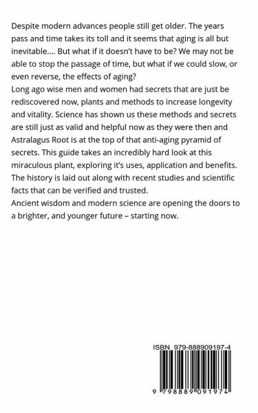 Despite modern advances people still get older. The years pass and time takes its toll and it seems that aging is all but inevitable…. But what if it doesn’t have to be? We may not be able to stop the passage of time, but what if we could slow, or even reverse, the effects of aging? Long ago wise men and women had secrets that are just be rediscovered now, plants and methods to increase longevity and vitality. Science has shown us these methods and secrets are still just as valid and helpful now as they were then and Astralagus Root is at the top of that anti-aging pyramid of secrets. This guide takes an incredibly hard look at this miraculous plant, exploring it’s uses, application and benefits. The history is laid out along with recent studies and scientific facts that can be verified and trusted. Ancient wisdom and modern science are opening the doors to a brighter, and younger future – starting now.