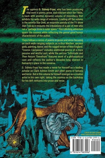 The ageless D. Sidney-Fryer, who has been producing vital work in poetry, prose, and criticism since the 1960s, is back with another dynamic volume of miscellany that exhibits his wide range of interests. Leading off the volume is the novella Star Drek, an exquisite parody of the TV show Star Trek as it recounts the tribulations of a pair of men who run a "garbage scow in outer space." This rollicking adventure spans the cosmos while reflecting the genial good humor characteristic of the author. There follows a series of poems in prose and verse focusing on such wide-ranging subjects as Arthur Machen, ancient gods, painting, dance, and the rugged terrain of New England. "Cosmic Castaways" includes additional poems of a more pensive and wistful sort, while the section "Infinitude and Then Return Therefrom" features work of a philosophical cast and reflects the author's decades-long interest in humanity's place in the universe. D. Sidney-Fryer has made a name for himself as a leading scholar on Clark Ashton Smith and other poets of fantasy and terror. But in this volume he himself emerges as a creative artist in his own right, taking the cosmos as the backdrop for his deft ventures into prose and verse.