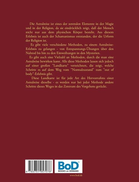 Die Astralreise ist eines der zentralen Elemente in der Magie und in der Religion, da sie eindrücklich zeigt, daß der Mensch nicht nur aus dem physischen Körper besteht. Aus diesem Erlebnis ist der Schamanismus entstanden, der die Urform der Religion ist. Es gibt viele verschiedene Methoden, zu einem Astralreise-Erlebnis zu gelangen - von Entspannungs-Übungen über den Nahtod bis hin zu den Einweihungen in den Mysterien. Es gibt auch eine Vielzahl an Methoden, durch die man eine Astralreise bewirken kann. Alle diese Methoden lassen sich jedoch auf einer großen "Landkarte" verzeichnen, die zeigt, welche Schritte es auf dem Weg vom "Normalzustand" zum "out of body"-Erlebnis gibt. Die Landkarte ist für jede Art des Hervorrufens einer Astralreise dieselbe - es werden nur bei jeder Methode andere Schritte dieses Weges in das Zentrum des Vorgehens gerückt.