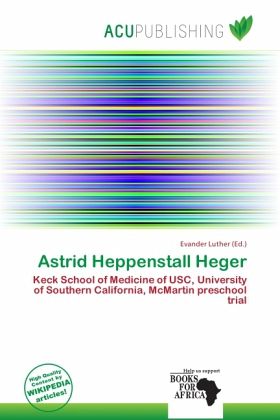 Please note that the content of this book primarily consists of articles available from Wikipedia or other free sources online. Astrid Heppenstall Heger, M.D. is a Professor of Clinical Pediatrics at the USC Keck School of Medicine and the founder and Executive Director of the Violence Intervention Program (VIP) at Los Angeles County-USC Medical Center in East Los Angeles. Heger has both a bachelors degree and an M.D. from the University of Southern California. In 1984, Dr. Heger founded the Center for the Vulnerable Child (CVC) for the evaluation of child abuse. This was the first medically-based Child Advocacy Center in the world and currently evaluates over 10,000 child abuse and child sexual assault victims every year. This model program has been replicated in hundreds of programs around the world. Renamed the Violence Intervention Program (VIP), Dr. Heger established the first of its kind, "one stop shop" community Family Advocacy Center, offering medical, mental health, protective, legal and social services to victims of family violence and sexual assault throughout Los Angeles County. With increasing pressure from law enforcement and social services to answer the need for improved services for adolescents and adults, in 1995 the program added interventions for sexual assault and domestic violence.