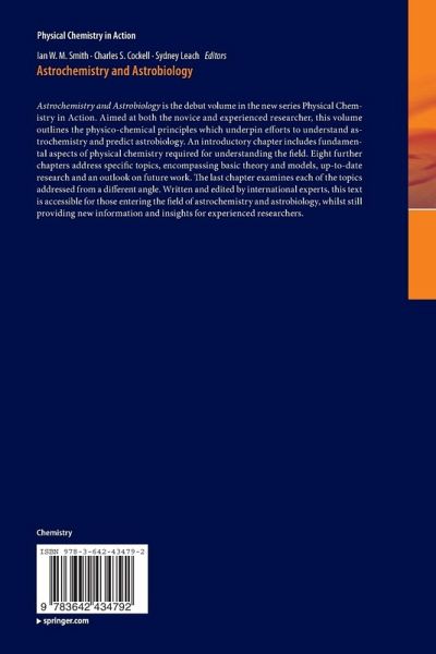 Astrochemistry and Astrobiology is the debut volume in the new series Physical Chemistry in Action. Aimed at both the novice and experienced researcher, this volume outlines the physico-chemical principles which underpin our attempts to understand astrochemistry and predict astrobiology. An introductory chapter includes fundamental aspects of physical chemistry required for understanding the field. Eight further chapters address specific topics, encompassing basic theory and models, up-to-date research and an outlook on future work. The last chapter examines each of the topics again but addressed from a different angle. Written and edited by international experts, this text is accessible for those entering the field of astrochemistry and astrobiology, while it still remains interesting for more experienced researchers.