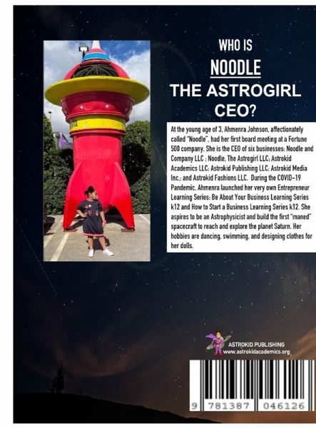 At the young age of 3, Ahmenra Johnson, affectionately called "Noodle", had her first board meeting at a Fortune 500 company. She is the CEO of six businesses: Noodle and Company LLC ; Noodle, The Astrogirl LLC; Astrokid Academics LLC; Astrokid Publishing LLC; Astrokid Media Inc.; and Astrokid Fashions LLC. During the pandemic, Ahmenra launched her very own Entrepreneur Learning Series: Be About Your Business Learning Series k12 and How to Start a Business Learning Series k12. She aspires to be an Astrophysicist and build the first "maned" spacecraft to reach and explore the planet Saturn. Her…mehr
