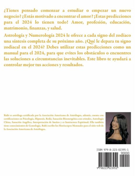 ¿Tienes pensado comenzar a estudiar o empezar un nuevo negocio? ¿Estás motivado a encontrar el amor? ¡Estas predicciones para el 2024 lo tienen todo! Amor, profesión, educación, matrimonio, finanzas, y salud. Astrología y Numerología 2024 le ofrece a cada signo del zodíaco una síntesis completa de su próximo año. ¿Qué le depara tu signo zodiacal en el 2024? Debes utilizar estas predicciones como un manual para el 2024, para que evites los obstáculos o encuentres las soluciones a circunstancias inevitables. Este libro te ayudará a controlar mejor tus acciones y resultados.
