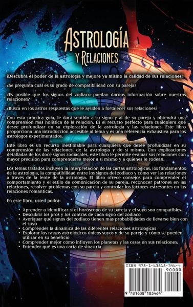 ¡Descubra el poder de la astrología y mejore ya mismo la calidad de sus relaciones! ¿Se pregunta cuál es su grado de compatibilidad con su pareja? ¿Es posible que los signos del zodiaco puedan darnos información sobre nuestras relaciones? ¿Busca en los astros respuestas que le ayuden a fortalecer sus relaciones? Con esta práctica guía, le dará sentido a su signo y al de su pareja y obtendrá una comprensión más holística de la relación. Es el recurso perfecto para cualquiera que desee profundizar en su exploración de la astrología y las relaciones. Este libro proporciona una introducción accesible al tema y es una referencia exhaustiva para los astrólogos experimentados. Este libro es un recurso inestimable para cualquiera que desee profundizar en su comprensión de las relaciones, de la astrología y de sí mismo. Con explicaciones detalladas de los doce signos zodiacales, este libro le permite evaluar sus relaciones con mayor precisión para comprenderse mejor a sí mismo y a quienes le rodean. Los temas tratados incluyen la interpretación de las cartas astrológicas, los fundamentos de la astrología, la compatibilidad entre los signos del zodiaco y cómo ver las relaciones a través de la lente de la astrología. El libro ofrece consejos para comprender el comportamiento y el estilo de comunicación de su pareja, reconocer patrones en las relaciones, resolver problemas con su pareja y controlar los factores estresantes en las relaciones románticas. En este libro, usted podrá:Aprender a identificar si el horóscopo de su pareja y el suyo son compatibles. Descubrir los pros y los contras de cada signo del zodiaco Averiguar qué signos del zodiaco tienen más probabilidades de llevarse bien con el suyo Comprender la dinámica de las diferentes relaciones astrológicas Explorar los rasgos astrológicos únicos suyos y de su pareja y cómo se pueden utilizar en su beneficio Comprender mejor cómo influyen los planetas y las casas en sus relaciones. Entender qué es una carta de sinastría ¿Por qué esperar? Aumente su comprensión de la astrología y las relaciones hoy mismo.