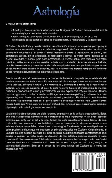 Dos manuscritos en un libro: Astrología: Lo que necesita saber sobre los 12 signos del Zodiaco, las cartas del tarot, la numerología y el despertar de la kundalini Tarot: Una guía básica para principiantes sobre la lectura psíquica del tarot, los significados de las cartas del tarot, la tirada del tarot, la numerología y la astrología ¿Está harto de no entender por qué la gente actúa como lo hace? ¿Quiere dejar de dudar continuamente de sus propias creencias y descubrir lo que realmente le funciona? Si es así, ¡ha venido al lugar correcto! Aunque haya estudiado psicología y sociología en profundidad, puede que le siga resultando difícil entender su ser interior y por qué la gente a su alrededor actúa de cierta manera, pero no tiene por qué ser así. De hecho, ¡es más sencillo de lo que se imagina! Un informe publicado en SBS.com.au demostró que echar las cartas del Tarot puede costar cientos de dólares, razón por la que este libro incluye lo básico para que usted mismo pueda leerlas. Esto significa que puede entenderse a usted mismo y a los que le rodean de forma más profunda y sin gastar demasiado dinero. primera parte de este libro incluyen: Los doce signos del Zodiaco y su significado más profundo Las bases de la numerología y cómo aplicarla en su día a día Siete formas en las que las cartas del tarot pueden predecir su personalidad ¡Y mucho, mucho más! segunda parte de este libro incluyen: La forma más fácil y rápida de aprender el Tarot y conectarse con su intuición. Cómo la lectura del Tarot puede ayudarlo a mejorar su calidad de vida. Cómo tomar el control de su vida. Cómo usar el mazo de Tarot para obtener información valiosa en diferentes situaciones. Cómo elegir y usar su mazo de Tarot para obtener comentarios confiables de su intuición. 5 trucos de memorización geniales y súper fáciles. Una baraja fácil de seguir y comprender, paso a paso, introducción y pautas para leer y comprender las cartas del Tarot. Encuentre su propio significado en el Tarot sin sentirse atrapado en la interpretación del autor. Cómo nuestros antepasados aprovechaban el Tarot en situaciones difíciles. Excelentes ejercicios para que usted aumente sus habilidades y domine el arte del Tarot. 5 consejos sorprendentes sobre cómo convertir su pasión por el Tarot en un negocio significativo y exitoso. ¡Y mucho, mucho más! ¡Compre este libro ahora y aprenda mucho más sobre el astrología y Tarot!