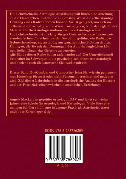 Die Lehrbuchreihe Astrologie-Ausbildung will Ihnen eine Anleitung an die Hand geben, mit der sie auf kreative Weise die selbstständige Deutung eines Horoskops erlernen können. Sie ist geeignet, um sich im Selbststudium astrologisches Wissen anzueignen, oder als begleitendes Material für Ihr Astrologiestudium an einer Astrologieschule.Die Lehrbuchreihe ist aus langjähriger Unterrichtspraxis heraus entstanden. Schritt für Schritt werden Sie dahin geführt, ein Radix, das Geburtshoroskop, eigenständig aus ganzheitlicher Sicht zu deuten. Übungen, die Sie mit den Deutungen der Autorin vergleichen können, helfen Ihnen, das Gelernte zu vertiefen.Alle Bände dieser Reihe bauen aufeinander auf. Der Unterrichtsstoff beinhaltet im Schwerpunkt die psychologisch orientierte Astrologie und bezieht auch die karmische Sichtweise mit ein.Dieser Band 10: »Combin und Composite« lehrt Sie, wie ein gemeinsames Horoskop für zwei oder mehr Personen berechnet und gedeutet wird. Ziel dieser Lehreinheit istdie astrologische Analyse der Energie und des Potenzials einer zwischenmenschlichen Beziehung.