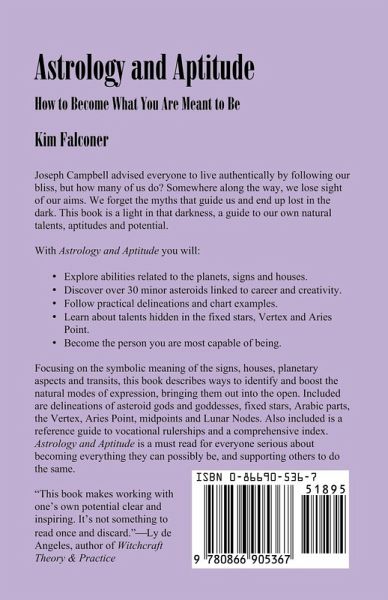Joseph Campbell advised everyone to live authentically by following our bliss, but how many of us do? Somewhere along the way, we lose sight of our aims. We forget the myths that guide us and end up lost in the dark. This book is a light in that darkness, a guide to our own natural talents, aptitudes and potential. With Astrology and Aptitude you will: Explore abilities related to the planets, signs and houses. Discover over 30 minor asteroids linked to career and creativity. Follow practical delineations and chart examples. Learn about talents hidden in the fixed stars, Vertex and Aries Point. Become the person you are most capable of being. Focusing on the symbolic meaning of the signs, houses, planetary aspects and transits, this book describes ways to identify and boost the natural modes of expression, bringing them out into the open. Included are delineations of asteroid gods and goddesses, fixed stars, Arabic parts, the Vertex, Aries Point, midpoints and Lunar Nodes. Also included is a reference guide to vocational rulerships and a comprehensive index. Astrology and Aptitude is a must read for everyone serious about becoming everything they can possibly be, and supporting others to do the same.
