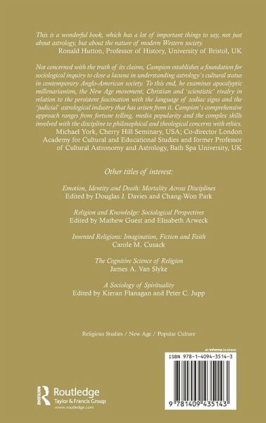 'This is a wonderful book, which has a lot of important things to say, not just about astrology, but about the nature of modern Western society.' Ronald Hutton, University of Bristol, UK 'Not concerned with the truth of its claims, Campion establishes a foundation for sociological inquiry to close a lacuna in understanding astrology's cultural status in contemporary Anglo-American society. To this end, he examines apocalyptic millenarianism, the New Age movement, Christian and "scientistic" rivalry in relation to the persistent fascination with the language of zodiac signs and the "judicial" astrological industry that has arisen from it. Campion's comprehensive approach ranges from fortune telling, media popularity and the complex skills involved with the discipline to philosophical and theological concerns with ethics.' Michael York, Cherry Hill Seminary, USA and Co-director London Academy for Cultural and Educational Studies