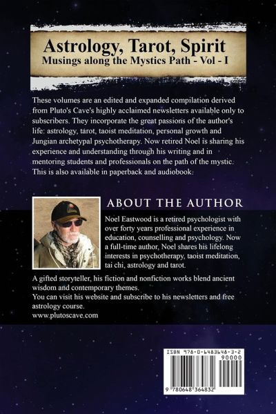 Astrology, Tarot, Spirit: Musings Along the Mystics Path - Volume 1 These volumes are an edited and expanded compilation derived from Pluto's Cave's highly acclaimed newsletters available only to subscribers. They incorporate the great passions of the author's life: astrology, tarot, taoist meditation, personal growth and Jungian archetypal psychotherapy. Now retired Noel shares his experience and understanding through his writing and in mentoring students and professionals on the path of the mystic. This is also available in paperback and audiobook.
