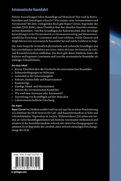 Der Autor bespricht verständlich physikalische und technische Grundlagen und lässt unterhaltsame Anekdoten aus seiner Arbeit als Leiter des Instituts für Luft- und Raumfahrtmedizin einfließen. Das Buch gibt damit Einblicke hinter die Kulissen und begeistert Leserinnen und Leser für astronautische Raumfahrt als wichtiges Zukunftsthema.