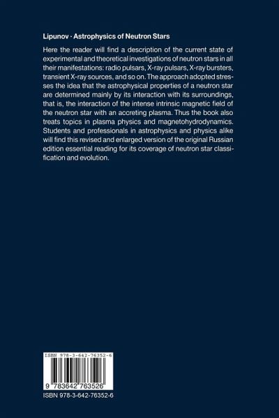 In this book will be found a description of the current state of experimental and theoretical investigations of neutron stars in all their manifestations. The approach adopted leads to topics in plasma physics and magnetohydrodynamics also being discussed. Students and professionals in astrophysics and physics alike will find this revised and enlarged version of the original Russian edition essential reading for its coverage of neutron star classification and evolution.