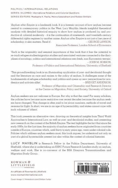 This book critiques existing literature on the response of Western states to asylum seeking ‘others’ and outlines an alternative perspective to acknowledge the colonial histories that have shaped the contemporary response of states to movements of refugees.