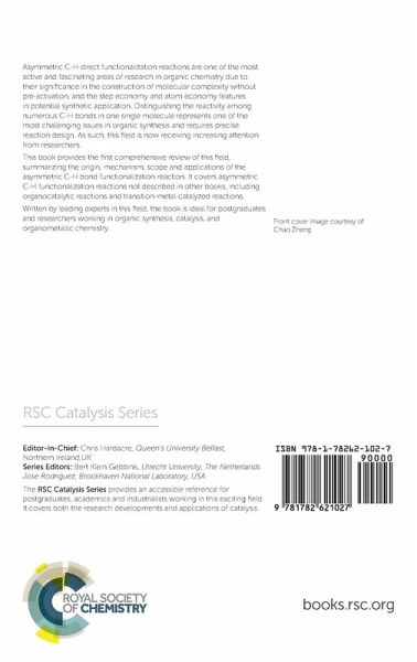 Asymmetric C-H direct functionalization reactions are one of the most active and fascinating areas of research in organic chemistry due to their significance in the construction of molecular complexity without pre-activation, and the step economy and atom economy features in potential synthetic application. Distinguishing the reactivity among numerous C-H bonds in one single molecule represents one of the most challenging issues in organic synthesis and requires precise reaction design. As such, this field is now receiving increasing attention from researchers. This book provides the first comprehensive review of this field, summarizing the origin, mechanism, scope and applications of the asymmetric C-H bond functionalization reaction. It covers organocatalytic reactions and transition-metal-catalyzed reactions, as well as asymmetric C-H functionalization reactions not described in other books. Written by a leading expert in this field, the book is ideal for postgraduates and researchers working in organic synthesis, catalysis, and organometallic chemistry.