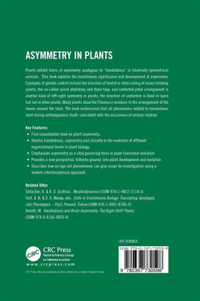 Plants exhibit forms of asymmetry analogous to "handedness" in bilaterally symmetrical animals. This book explores the evolutionary significance and development of asymmetry including the direction of tendril growth or stem coiling found in many climbing plants, spiral phyllotaxy and floral taxy, and contorted petal arrangement.