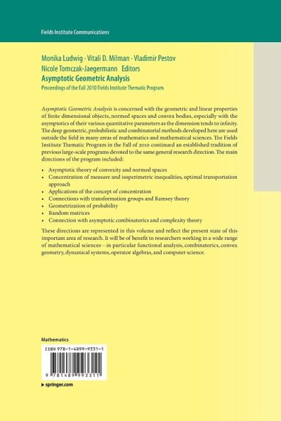 Asymptotic Geometric Analysis is concerned with the geometric and linear properties of finite dimensional objects, normed spaces, and convex bodies, especially with the asymptotics of their various quantitative parameters as the dimension tends to infinity. The deep geometric, probabilistic, and combinatorial methods developed here are used outside the field in many areas of mathematics and mathematical sciences. The Fields Institute Thematic Program in the Fall of 2010 continued an established tradition of previous large-scale programs devoted to the same general research direction. The main directions of the program included: