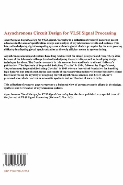 Asynchronous Circuit Design for VLSI Signal Processing is a collection of research papers on recent advances in the area of specification, design and analysis of asynchronous circuits and systems. This interest in designing digital computing systems without a global clock is prompted by the ever growing difficulty in adopting global synchronization as the only efficient means to system timing. Asynchronous circuits and systems have long held interest for circuit designers and researchers alike because of the inherent challenge involved in designing these circuits, as well as developing design techniques for them. The frontier research in this area can be traced back to Huffman's publications `The Synthesis of Sequential Switching Circuits' in 1954 followed by Unger's book, `Asynchronous Sequential Switching Circuits' in 1969 where a theoretical foundation for handling logic hazards was established. In the last few years a growing number of researchers have joined force in unveiling the mystery of designing correct asynchronous circuits, and better yet, have produced several alternatives in automatic synthesis and verification of such circuits. This collection of research papers represents a balanced view of current research efforts in the design, synthesis and verification of asynchronous systems.