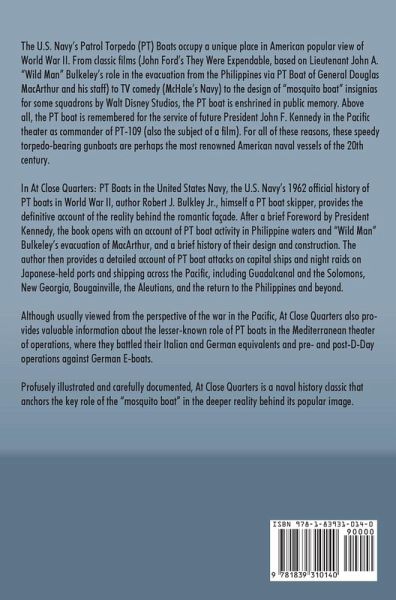Small though they were, PT boats played a key role in World War II, carrying out an astonishing variety of missions where fast, versatile, and strongly armed vessels were needed. Called "weapons of opportunity," they met the enemy at closer quarters and with greater frequency than any other type of surface craft. Among the most famous PT commanders was John F. Kennedy, whose courageous actions in the Pacific are now well known to the American public. The author of the book, another distinguished PT boat commander in the Pacific, compiled this history of PT-boat operations in World War II for the U.S. Navy shortly after V-J Day, when memories were fresh and records easily assessable. The book was first made available to the public in 1962 after Kennedy's inauguration as president of the United States interest in PTs was at a peak. Bulkley provides a wealth of facts about these motor torpedo boats, whose vast range of operation covered two oceans as well as the Mediterranean and the English Channel. Although their primary mission was to attack surface ships and craft close to shore, they were also used effectively to lay mines and smoke screens, to rescue downed aviators, and to carry out intelligence and raider operations. The author gives special attention to the crews, paying well-deserved tribute to their heroism, skill, and sacrifice that helped to win the war.