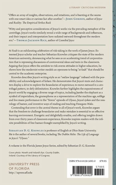 At Fault: James Joyce and the Modern University argues that American universities have lost their way, and that the works of James Joyce will put them back on the scent. There are chapters on centrifugal motion, gramophones, elephants, fox-hunting, philately, brain mapping, and baseball: a compendium of approaches befitting the ever-expanding world of James Joyce.