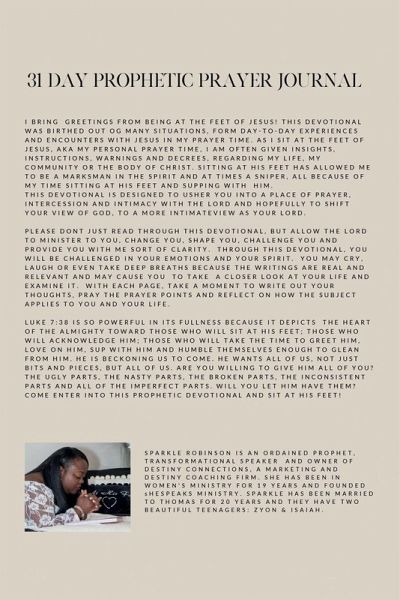 I bring greetings from being at the feet of Jesus! This devotional was birthed out of many situations, from day-to-day experiences and encounters with Jesus in my prayer time. This devotional is designed to usher you into a place of prayer, intercession, and intimacy with the Lord, and hopefully to shift your view of God, into seeing Him as your Lord and Father!