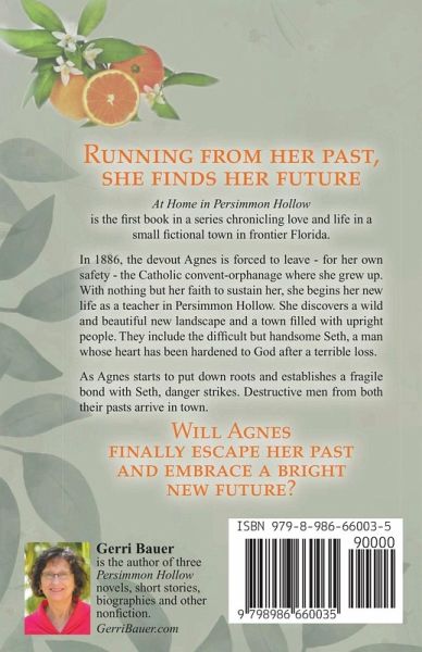 Running from her past, a devout teacher finds her future. At Home in Persimmon Hollow is the first book in a series chronicling love and life in a small fictional town in frontier Florida. In 1886, the pious Agnes is forced to leave - for her own safety - the Catholic convent-orphanage where she grew up. With nothing but her faith to sustain her, she begins her new life as a teacher in Persimmon Hollow. She discovers a wild and beautiful new landscape and a town filled with upright people. They include the difficult but handsome Seth, a man whose heart has been hardened to God after a terrible loss. As Agnes starts to put down roots and establishes a fragile bond with Seth, danger strikes. Destructive men from both their pasts arrive in town. Can Agnes finally escape her past and find a bright new future?