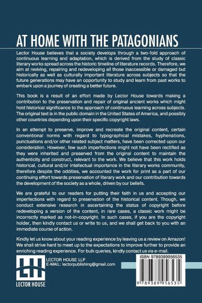 At Home With The Patagonians: A Year's Wanderings Over Untrodden Ground From The Straits Of Magellan To The Rio Negro This book is a result of an effort made by us towards making a contribution to the preservation and repair of original classic literature. In an attempt to preserve, improve and recreate the original content, we have worked towards: 1. Type-setting & Reformatting: The complete work has been re-designed via professional layout, formatting and type-setting tools to re-create the same edition with rich typography, graphics, high quality images, and table elements, giving our readers the feel of holding a 'fresh and newly' reprinted and/or revised edition, as opposed to other scanned & printed (Optical Character Recognition - OCR) reproductions. 2. Correction of imperfections: As the work was re-created from the scratch, therefore, it was vetted to rectify certain conventional norms with regard to typographical mistakes, hyphenations, punctuations, blurred images, missing content/pages, and/or other related subject matters, upon our consideration. Every attempt was made to rectify the imperfections related to omitted constructs in the original edition via other references. However, a few of such imperfections which could not be rectified due to intentional\unintentional omission of content in the original edition, were inherited and preserved from the original work to maintain the authenticity and construct, relevant to the work. We believe that this work holds historical, cultural and/or intellectual importance in the literary works community, therefore despite the oddities, we accounted the work for print as a part of our continuing effort towards preservation of literary work and our contribution towards the development of the society as a whole, driven by our beliefs. We are grateful to our readers for putting their faith in us and accepting our imperfections with regard to preservation of the historical content. HAPPY READING!