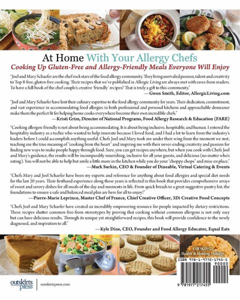 Joel and Mary Schaefer, professional chefs who both live with food allergies and intolerances, wrote At Home with Your Allergy Chefs: Cooking Up Gluten-Free and Allergy-Friendly Meals Everyone Will Enjoy to make the journey to delicious meals with purpose easy and accessible. The book is a treasure for those with food allergies or sensitivities, including those with celiac disease and on gluten-free and vegan diets. The Schaefers began their journey in food allergies at Walt Disney World® Resort. Joel was the culinary development and special dietary needs manager, responsible for developing the food allergy and special diets program for Disney properties worldwide and Disney Cruise Line, which is known as the gold standard in the food service industry. With Mary's role as pastry chef, she worked with Joel on developing amazingly safe and delicious desserts that helped bring Disney's reputation for serving people with food allergies to the next level. The Schaefers believe that recipes modified to accommodate food allergies don't have to compromise taste. All you have to do is turn the pages in their book to have your favorite meals come true.
