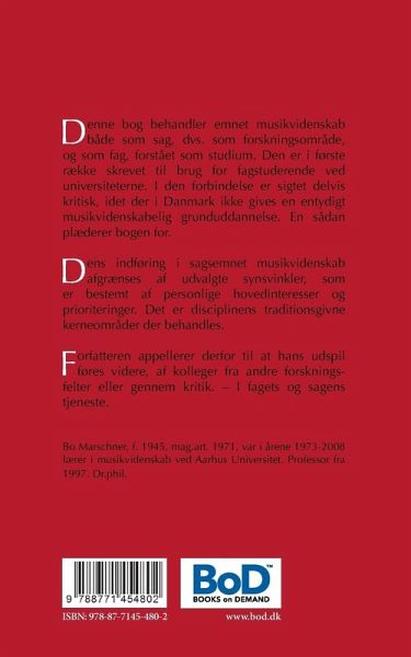 Denne bog behandler emnet musikvidenskab både som sag, dvs. som forskningsområde, og som fag, forstået som studium. Den er i første række skrevet til brug for fagstuderende ved universiteterne. I den forbindelse er sigtet delvis kritisk, idet der i Danmark ikke gives en entydigt musikvidenskabelig grunduddannelse. En sådan plæderer bogen for.
