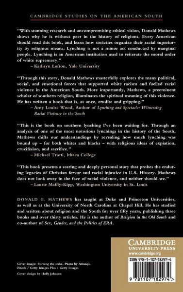 The story of a black day-laborer called Sam Hose killing his white employer in a workplace dispute ended in a lynching of enormous religious significance. For many deeply-religious communities in the Jim Crow South, killing those like Sam Hose restored balance to a moral cosmos upended by a heinous crime. A religious intensity in the mood and morality of segregation surpassed law, and in times of social crisis could justify illegal white violence - even to the extreme act of lynching. In At the Altar of Lynching, distinguished historian Donald G. Mathews offers a new interpretation of the murder of Sam Hose, which places the religious culture of the evangelical South at its center. He carefully considers how mainline Protestants, including women, not only in many instances came to support or accept lynching, but gave the act religious meaning and justification.