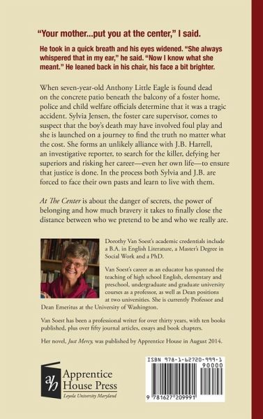 When seven-year-old Anthony Little Eagle is found dead on the concrete patio beneath the balcony of a foster home, police and child welfare officials determine that it was a tragic accident. Sylvia Jensen, the foster care supervisor, comes to suspect that the boy's death may have involved foul play and she is launched on a journey to find the truth no matter what the cost. She forms an unlikely alliance with J.B. Harrell, an investigative reporter, to search for the killer, defying her superiors and risking her career-even her own life-to ensure that justice is done. In the process both Sylvia and J.B. are forced to face their own pasts and learn to live with them. At The Center is about the danger of secrets, the power of belonging and how much bravery it takes to finally close the distance between who we pretend to be and who we really are.