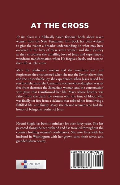 At the Cross is a biblically based fictional book about seven women from the New Testament. This book has been written to give the reader a broader understanding on what may have occurred in the lives of these seven women and their journey as they encounter the unfailing love of Jesus and experience a wondrous transformation when He forgives, heals, and restores their life at...the cross. Meet the adulterous woman and the wondrous love and forgiveness she encountered when she met the Savior; the widow and the unspeakable joy she experienced when Jesus raised her son from the dead; the Canaanite woman whose daughter was set free from demons; the Samaritan woman and the conversation with Jesus that transformed her life; Mary whose brother was raised from the dead; the woman with the issue of blood who was finally set free from a sickness that robbed her from living a fulfilled life; and finally, Mary, the blessed woman who had the honor of being the mother of Jesus.