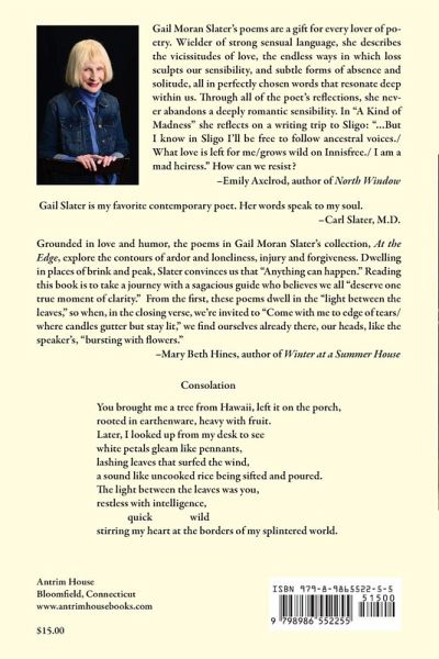 Gail Moran Slater's poetry collection At the Edge finds multiple consolations for the sadness at its heart: consolations of the natural world, works of art, mid-life love, and the joys of family.